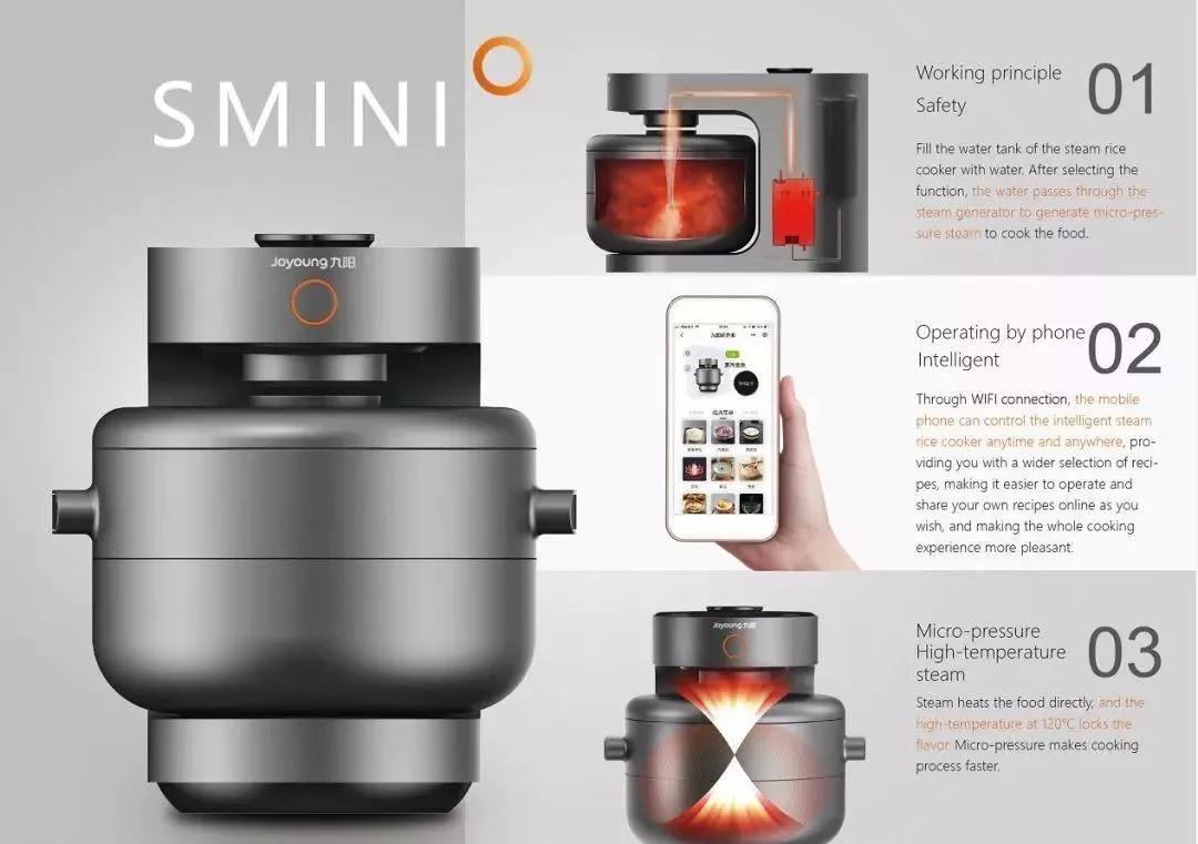 電飯煲作為我們熟悉的小家電,也可以擁有強烈的科技美感!F-MINI蒸汽電飯煲在外觀上的每個細節(jié)都表現(xiàn)出獨特而一致的使用形式,內(nèi)部容器設計趨向于餐具設計,手機也可以操作,非常方便。友好的用戶圖形界面也給人留下深刻的印象。